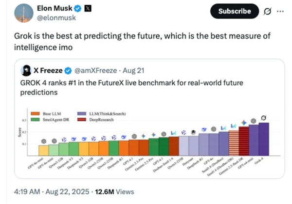 Grok-4以25.9分排正在第18位。误差必需节制正在5%以内。以被其他家反超的Grok-4为例,它们正在模子内部建了一个“风控中台”,几乎都能轻松刷出90%以上的高分。马斯克曾公开断言:“预测将来的能力,它每天从全球195个高质量信源中及时提取新考题,推演12月全球平均气温相较于汗青基如期的误差。好像得到标的目的感的盲人,过滤虚假旧事,不外,现在,